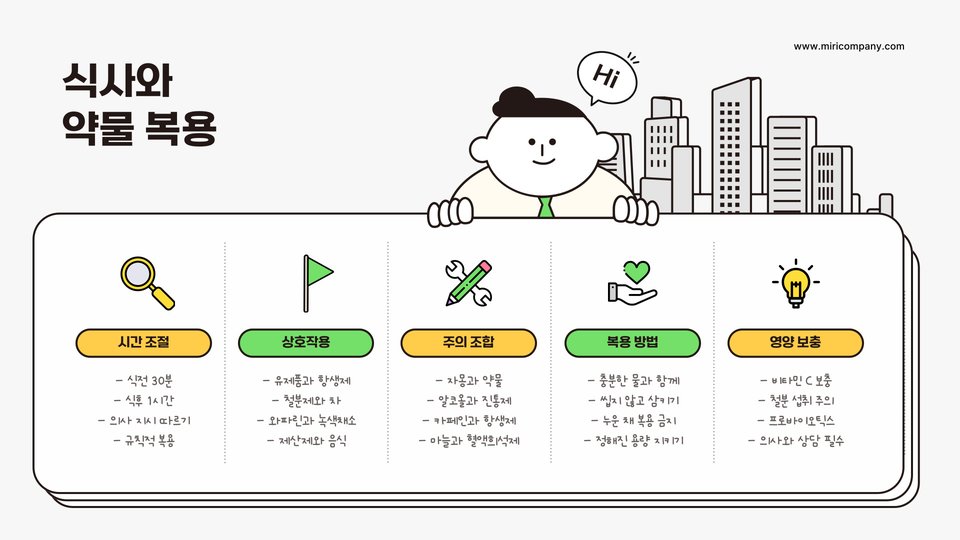 통증 관리 및 식사 조화 요점
