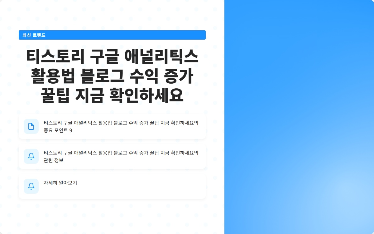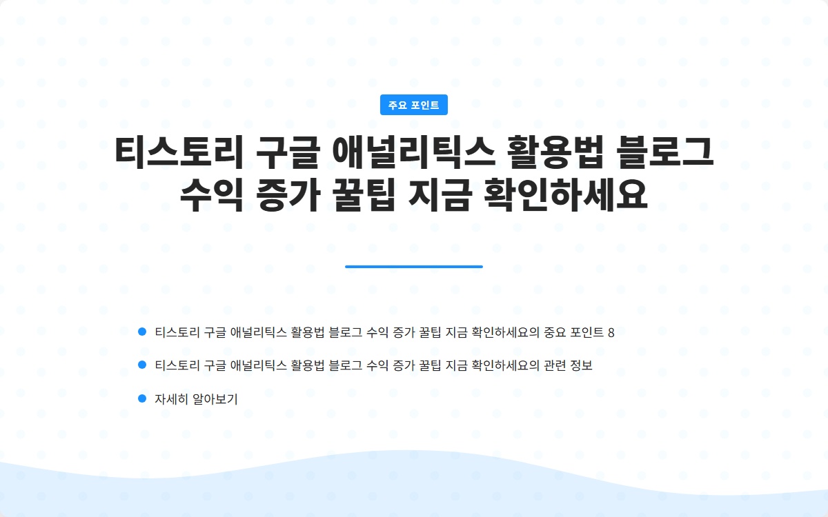 티스토리, 구글 애널리틱스, 블로그 수익, SEO, 체류시간, 데이터 분석, 블로그 운영, 콘텐츠 전략, 블로그 마케팅, 웹 통계Q. 티스토리 블로그에 구글 애널리틱스를 어떻게 등록하나요?